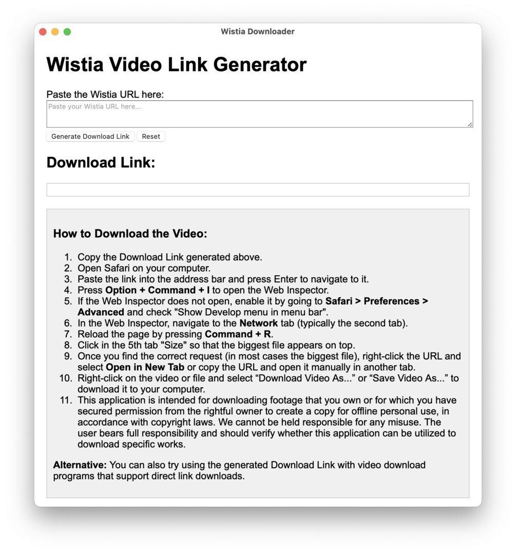 Are you looking for a simple way to download your favorite Wistia videos? Look no further! Wistia Downloader allows you to easily generate download links and save your chosen content directly to your Mac.